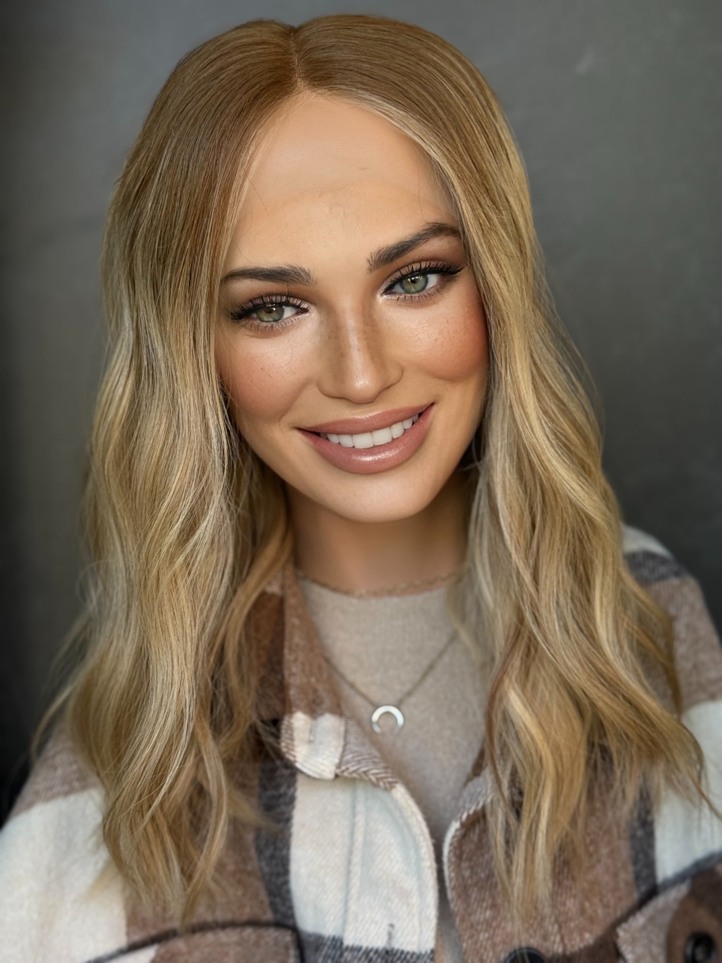 - sunny rooted dimensional blonde with front money pieces