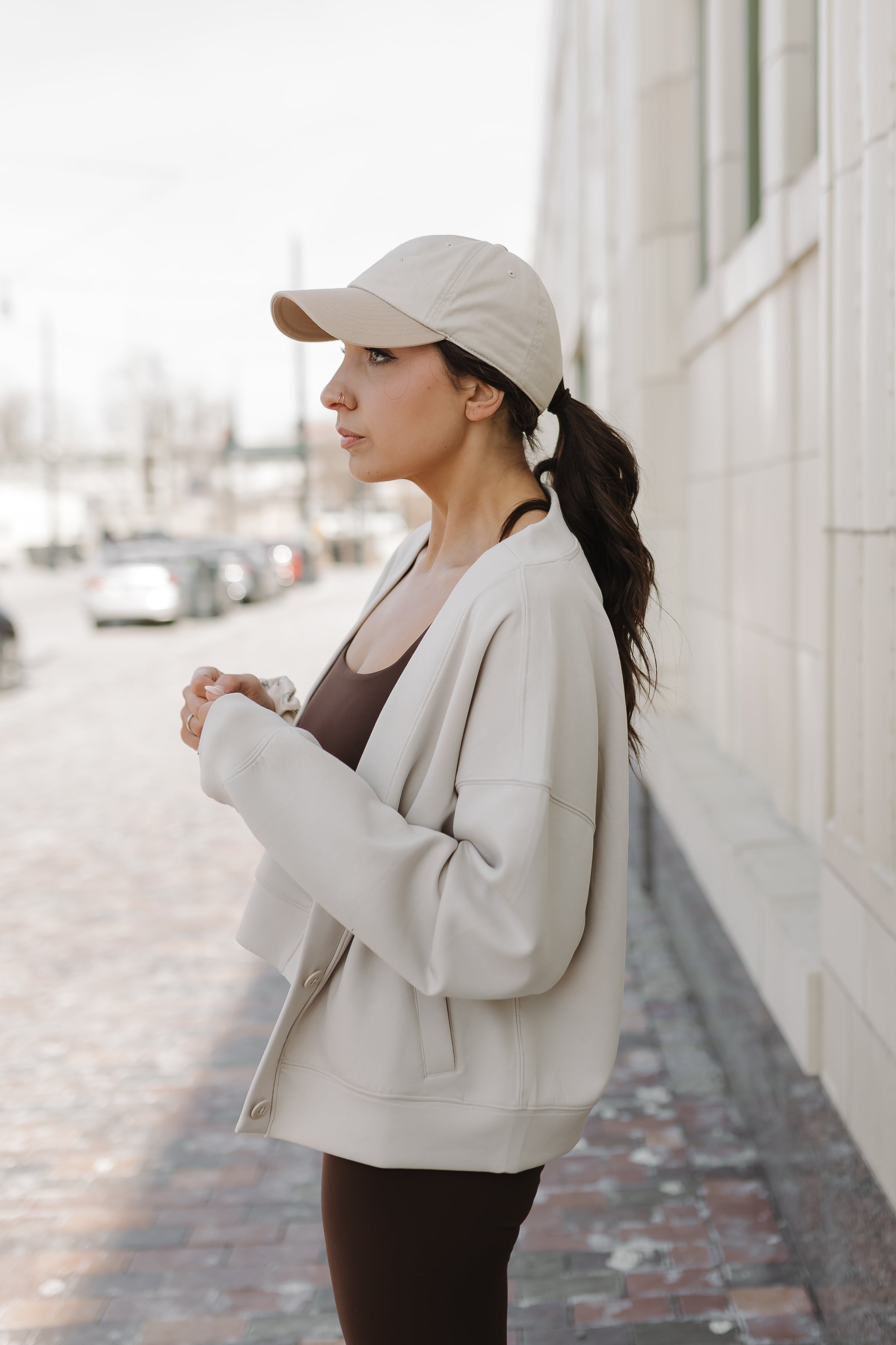While our Luxe Active Wig is shown styled with a hat, it does not come with one. We designed this wig to be completely versatile, allowing you to pair it with your favorite headbands to match your personal style. This way, you can effortlessly switch up your look to complement any outfit, mood, or occasion.